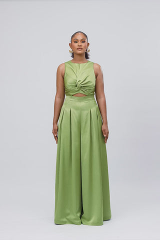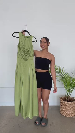 Look unforgettable in this stunning jumpsuit, made from a beautiful satin fabric. This sleek, sleeveless design features wide legs for a flowing, dramatic silhouette, convenient pockets, and a daring cut-out detail at the waist. Perfect for making a statement at special occasions or turning heads on a night out.